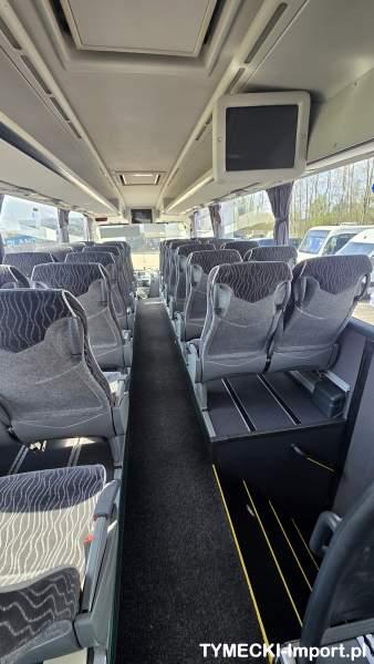 : video, lodówka, fotele odchylane, oświetlenie indywidualne, nawiewy dyszowe, ABS, ASR, tempomat, retarder, CD, podnóżki, mikrofon, klimatyzacja, radio, rampa dla inwalidów, regulacja wysokości nadwozia, podwójne szyby boczne, wspomaganie kierownicy, elektryczne lusterka, DVD, ogrzewanie stacjonarne