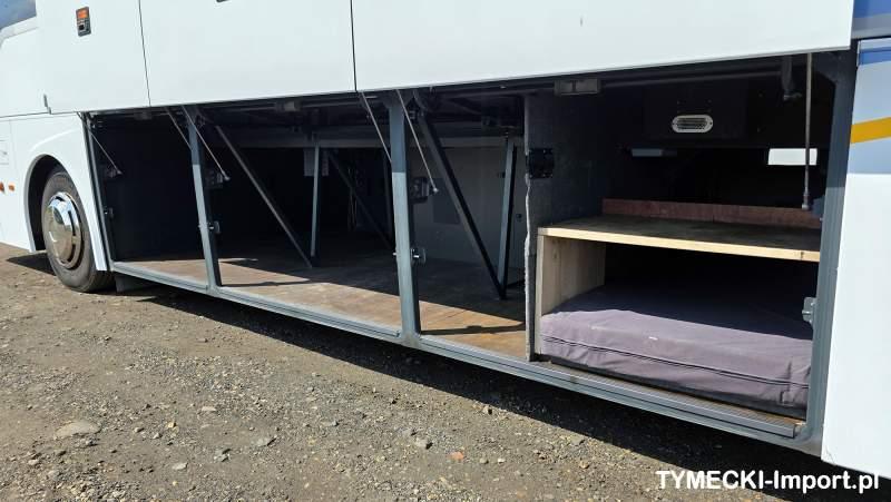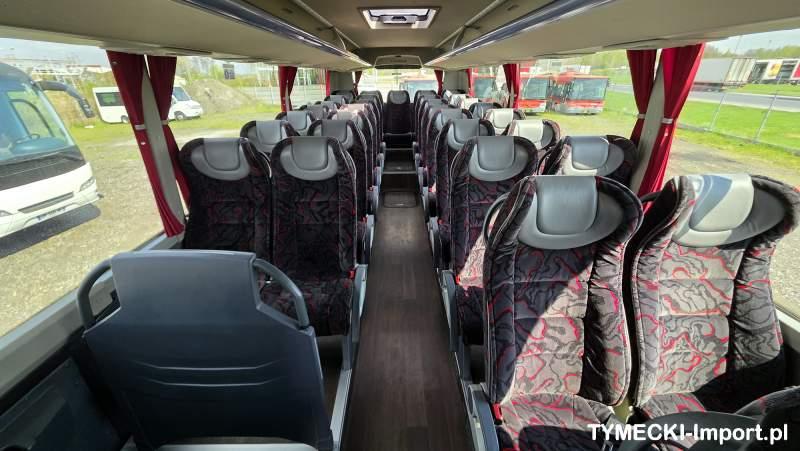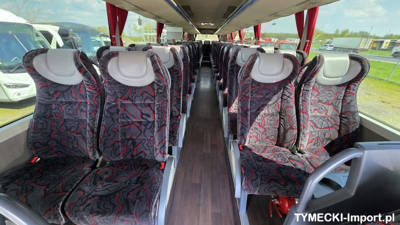: video, WC, lodówka, kabina sypialna, oświetlenie indywidualne, nawiewy dyszowe, siateczki, ABS, ASR, tempomat, retarder, nawigacja, CD, podnóżki, stoliczki, mikrofon, klimatyzacja, radio, regulacja wysokości nadwozia, podwójne szyby boczne, wspomaganie kierownicy, elektryczne lusterka, fotele odchylane i rozsuwane, DVD, ogrzewanie stacjonarne, ESP
