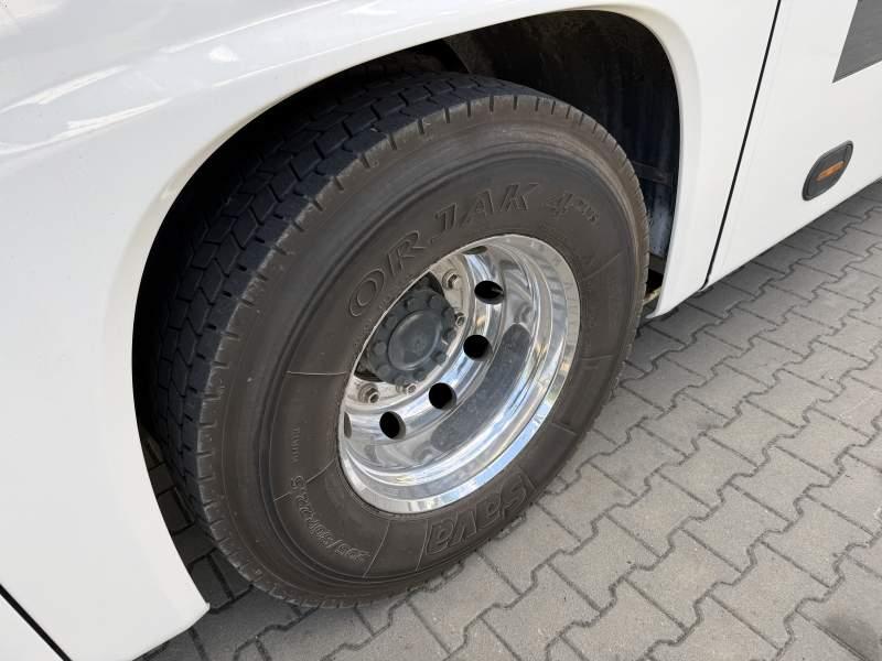 : WC, lodówka, kabina sypialna, fotele odchylane, nawiewy dyszowe, tempomat, CD, podnóżki, mikrofon, klimatyzacja, radio, regulacja wysokości nadwozia, podwójne szyby boczne, wspomaganie kierownicy, elektryczne lusterka, aluminiowe felgi, fotele odchylane i rozsuwane, DVD, ESP