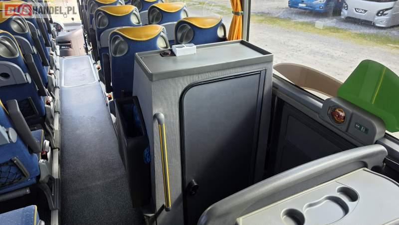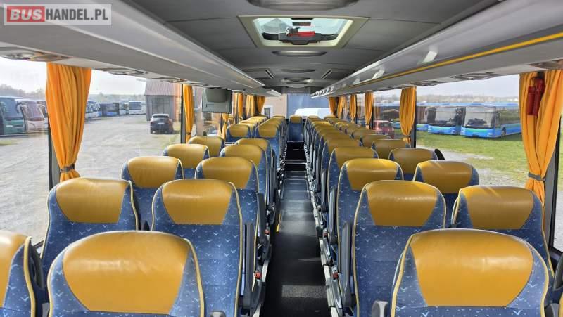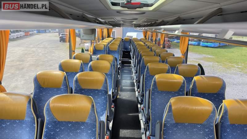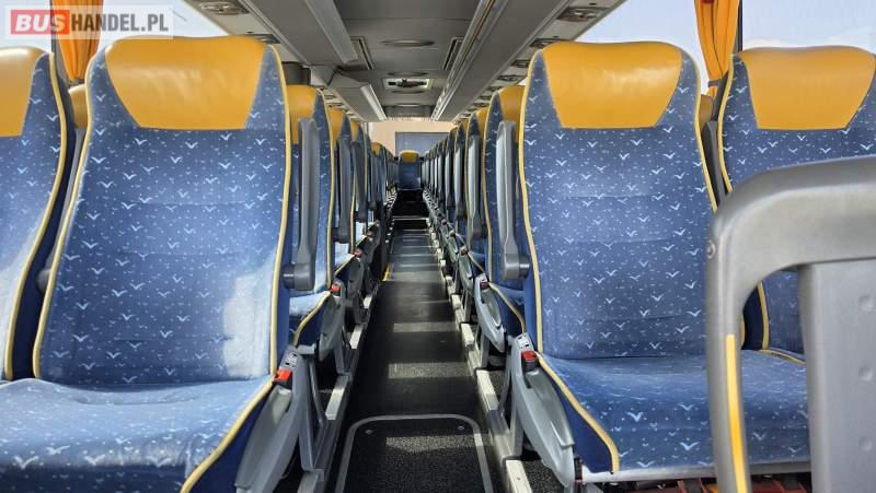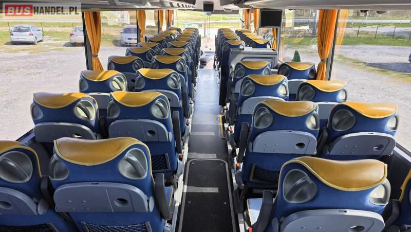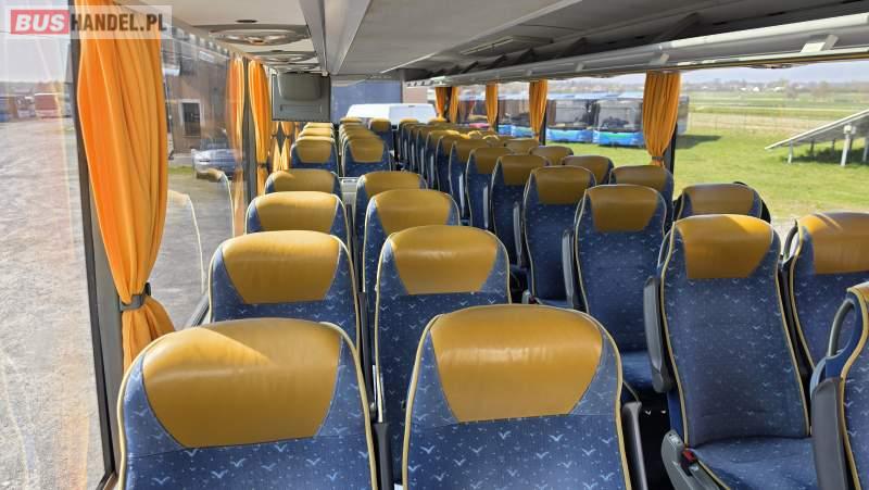 : video, WC, lodówka, caffebar, kabina sypialna, oświetlenie indywidualne, nawiewy dyszowe, siateczki, ABS, ASR, tempomat, retarder, CD, podnóżki, stoliczki, mikrofon, klimatyzacja, radio, regulacja wysokości nadwozia, centralny zamek, podwójne szyby boczne, wspomaganie kierownicy, elektryczne lusterka, fotele odchylane i rozsuwane, DVD, ogrzewanie stacjonarne, ESP