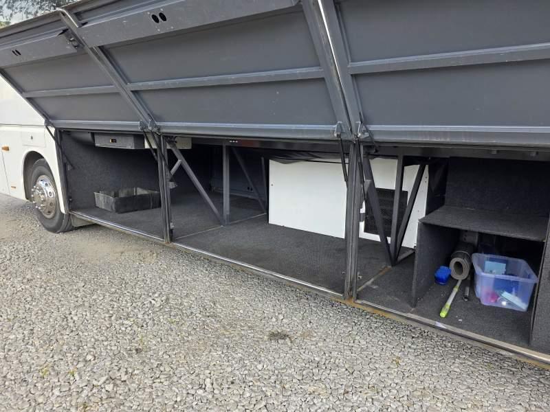 : video, WC, lodówka, fotele odchylane, oświetlenie indywidualne, nawiewy dyszowe, siateczki, ABS, ASR, tempomat, retarder, nawigacja, CD, podnóżki, stoliczki, mikrofon, klimatyzacja, radio, regulacja wysokości nadwozia, centralny zamek, podwójne szyby boczne, wspomaganie kierownicy, elektryczne lusterka, fotele odchylane i rozsuwane, ogrzewanie stacjonarne, ESP