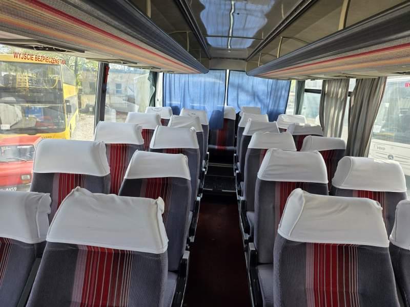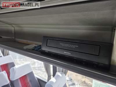 : klimatyzacja, video, lodówka, oświetlenie indywidualne, nawiewy dyszowe, podnóżki, stoliczki, siateczki, ABS, ASR, retarder, mikrofon, radio, fotele odchylane i rozsuwane, regulacja wysokości nadwozia, podwójne szyby boczne, wspomaganie kierownicy, ogrzewanie stacjonarne