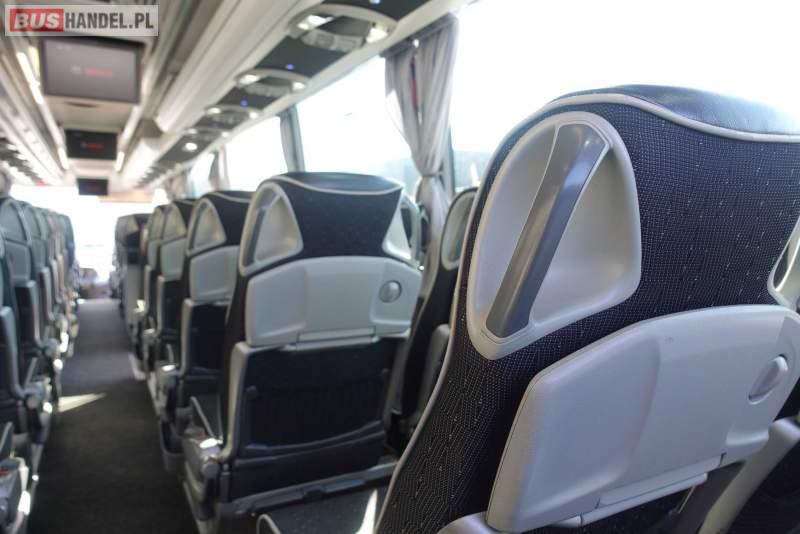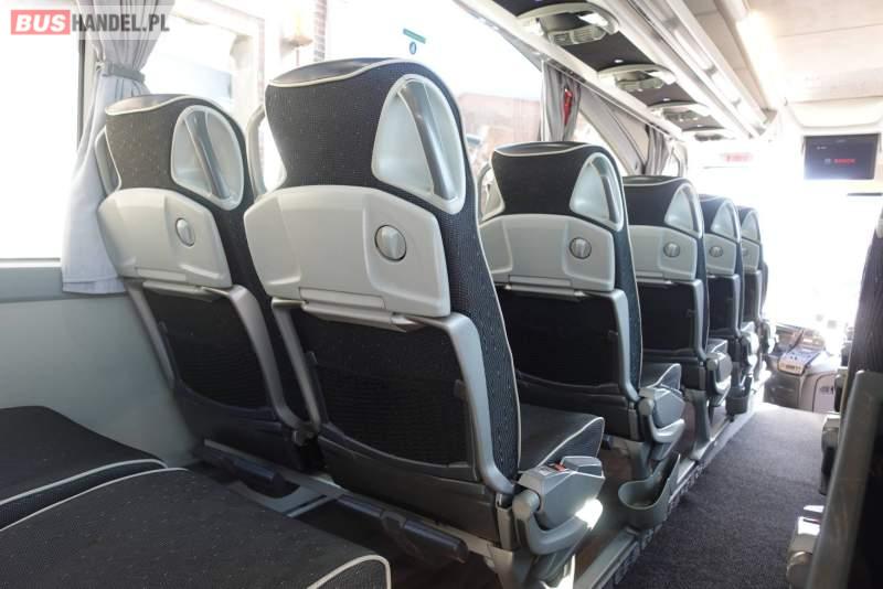 : video, WC, lodówka, kabina sypialna, fotele odchylane, oświetlenie indywidualne, nawiewy dyszowe, siateczki, ABS, ASR, tempomat, retarder, CD, podnóżki, stoliczki, mikrofon, klimatyzacja, radio, regulacja wysokości nadwozia, centralny zamek, podwójne szyby boczne, wspomaganie kierownicy, elektryczne lusterka, fotele odchylane i rozsuwane, DVD, ogrzewanie stacjonarne, ESP