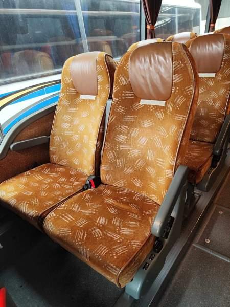 : video, WC, lodówka, caffebar, kabina sypialna, fotele odchylane, oświetlenie indywidualne, nawiewy dyszowe, siateczki, ABS, tempomat, nawigacja, CD, podnóżki, stoliczki, mikrofon, klimatyzacja, radio, regulacja wysokości nadwozia, podwójne szyby boczne, wspomaganie kierownicy, elektryczne lusterka, DVD, ogrzewanie stacjonarne