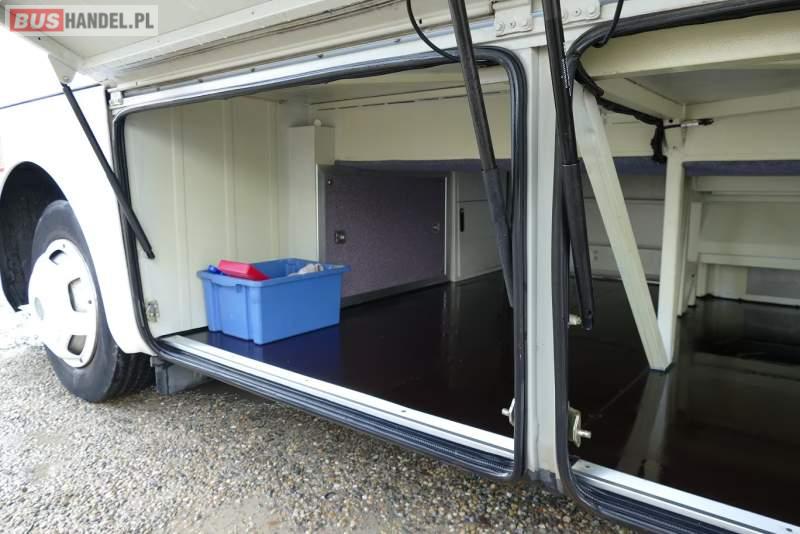 : lodówka, fotele odchylane, oświetlenie indywidualne, ABS, ASR, tempomat, retarder, CD, klimatyzacja, regulacja wysokości nadwozia, centralny zamek, wspomaganie kierownicy, elektryczne lusterka, DVD, ogrzewanie stacjonarne, ESP