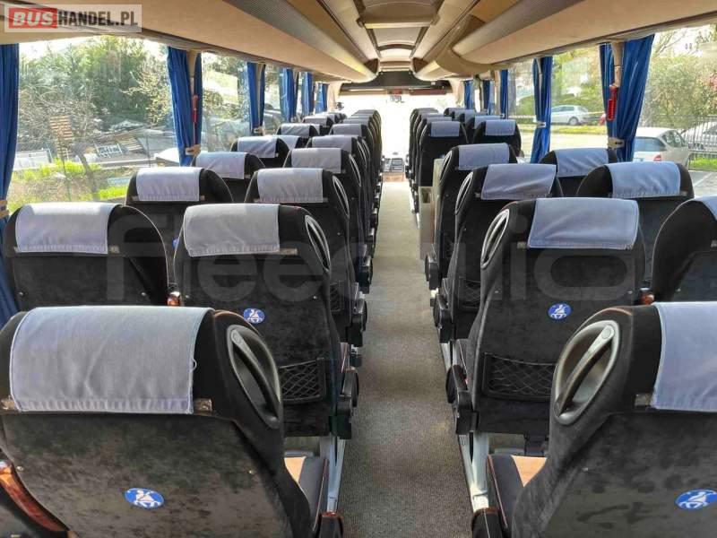 : WC, lodówka, fotele odchylane, ABS, ASR, retarder, CD, podnóżki, mikrofon, klimatyzacja, DVD