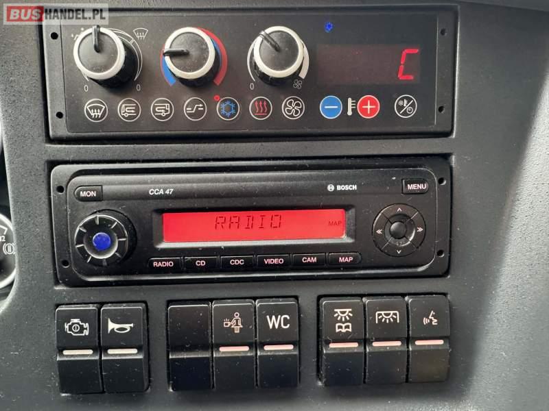 : video, WC, lodówka, kabina sypialna, oświetlenie indywidualne, nawiewy dyszowe, siateczki, ABS, ASR, tempomat, retarder, CD, podnóżki, stoliczki, mikrofon, klimatyzacja, radio, regulacja wysokości nadwozia, centralny zamek, podwójne szyby boczne, wspomaganie kierownicy, elektryczne lusterka, fotele odchylane i rozsuwane, DVD, ogrzewanie stacjonarne, ESP
