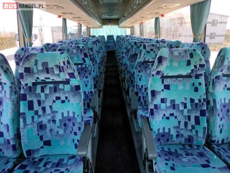 : video, lodówka, fotele odchylane, oświetlenie indywidualne, nawiewy dyszowe, siateczki, ABS, ASR, tempomat, retarder, CD, podnóżki, stoliczki, mikrofon, klimatyzacja, radio, sejf, regulacja wysokości nadwozia, centralny zamek, podwójne szyby boczne, wspomaganie kierownicy, elektryczne lusterka, aluminiowe felgi, fotele odchylane i rozsuwane, DVD, ogrzewanie stacjonarne, ESP
