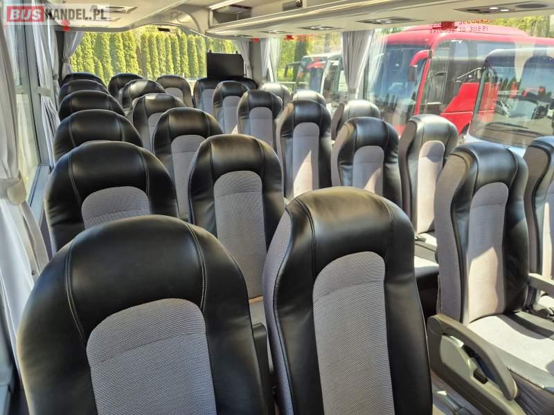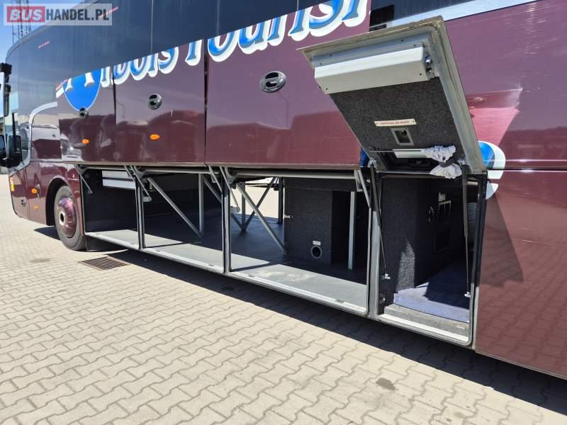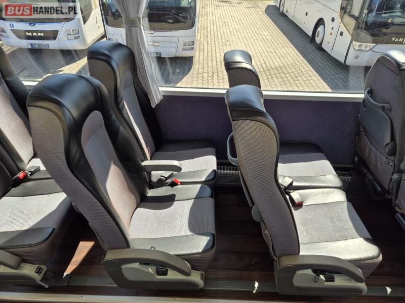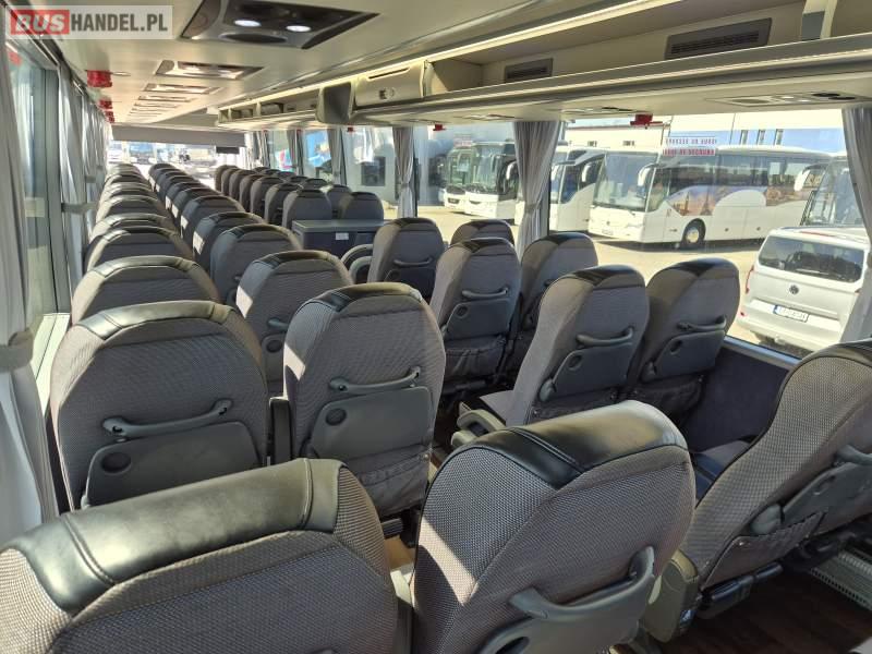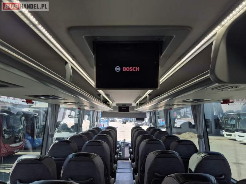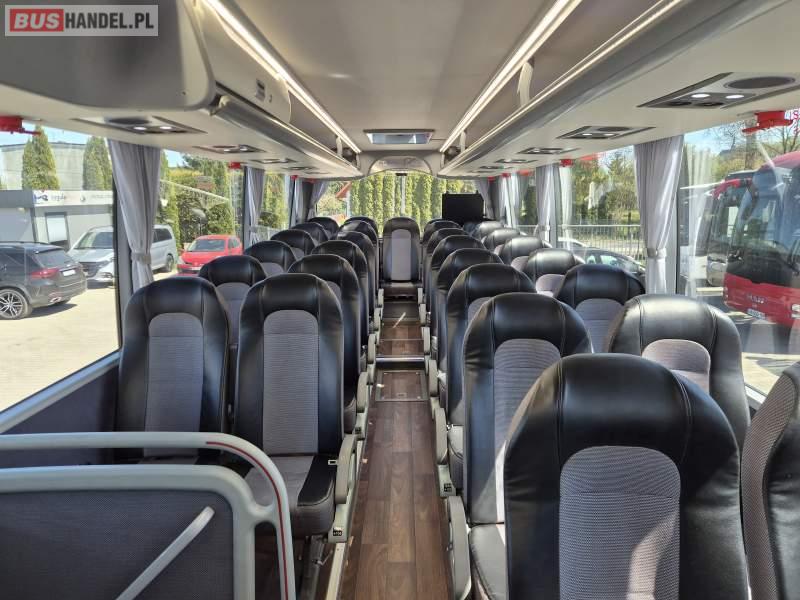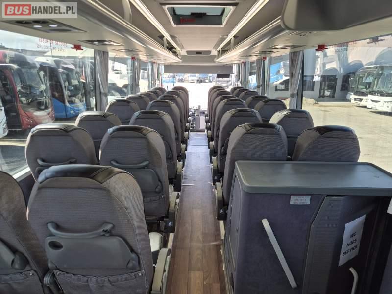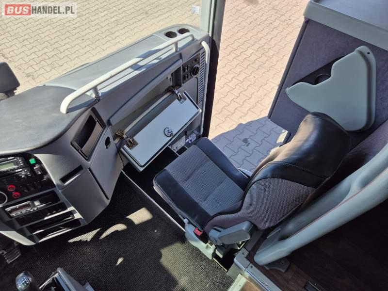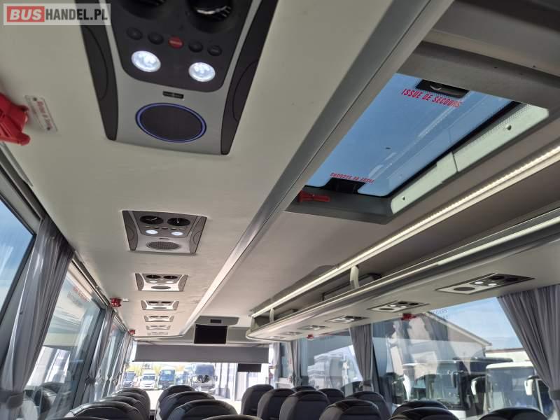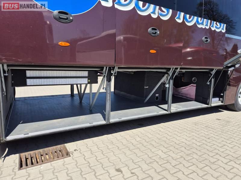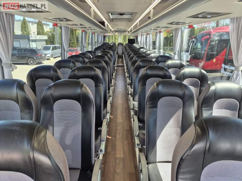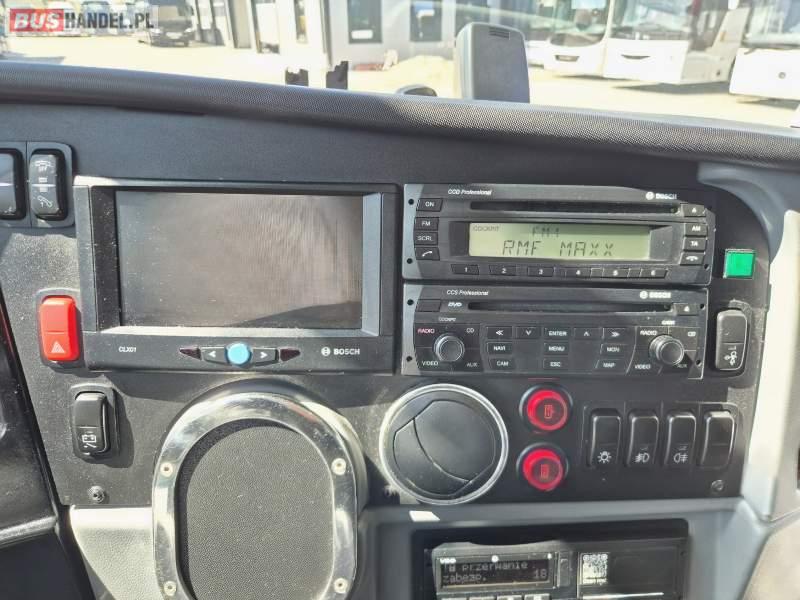 : video, WC, lodówka, kabina sypialna, fotele odchylane, oświetlenie indywidualne, nawiewy dyszowe, ABS, tempomat, retarder, CD, mikrofon, klimatyzacja, radio, regulacja wysokości nadwozia, centralny zamek, podwójne szyby boczne, wspomaganie kierownicy, elektryczne lusterka, DVD, ogrzewanie stacjonarne