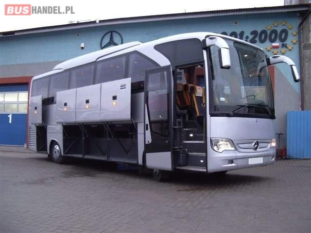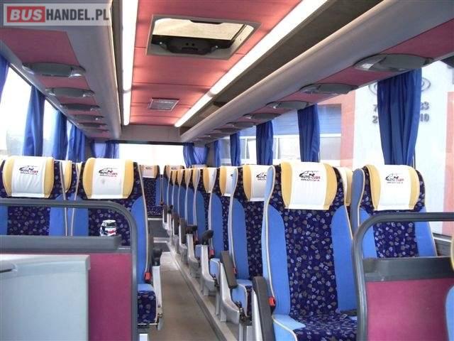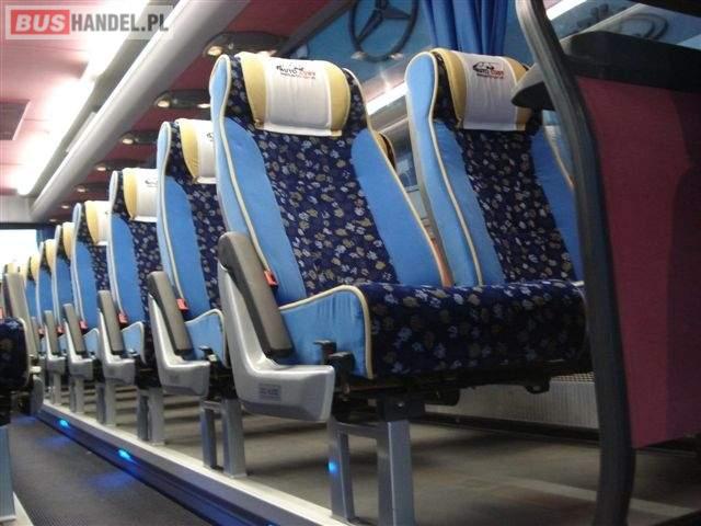 : video, lodówka, caffebar, fotele odchylane, oświetlenie indywidualne, nawiewy dyszowe, siateczki, ABS, ASR, retarder, nawigacja, CD, podnóżki, mikrofon, klimatyzacja, radio, sejf, centralny zamek, podwójne szyby boczne, wspomaganie kierownicy, elektryczne lusterka, aluminiowe felgi, fotele odchylane i rozsuwane, DVD, ogrzewanie stacjonarne
