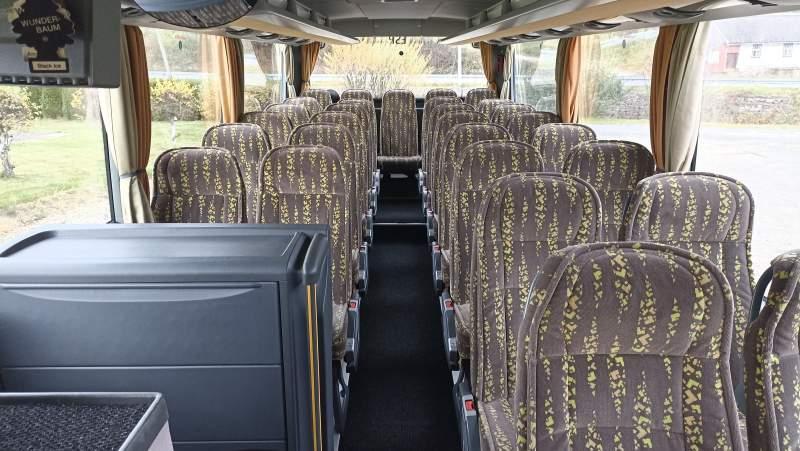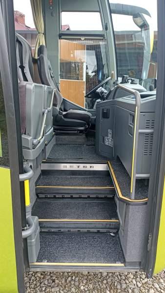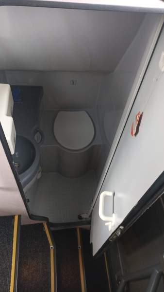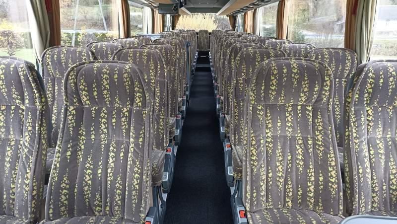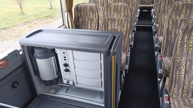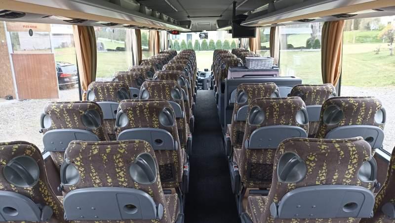 : WC, lodówka, caffebar, fotele odchylane, nawiewy dyszowe, siateczki, ABS, ASR, tempomat, retarder, CD, stoliczki, mikrofon, klimatyzacja, radio, sejf, centralny zamek, podwójne szyby boczne, elektryczne lusterka, DVD, ESP