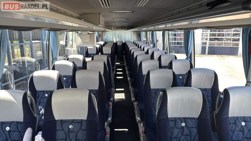 : video, WC, lodówka, caffebar, oświetlenie indywidualne, nawiewy dyszowe, siateczki, ABS, ASR, tempomat, retarder, nawigacja, CD, podnóżki, stoliczki, mikrofon, klimatyzacja, wyświetlacz matrix, regulacja wysokości nadwozia, centralny zamek, podwójne szyby boczne, wspomaganie kierownicy, elektryczne lusterka, fotele odchylane i rozsuwane, DVD, ogrzewanie stacjonarne, ESP