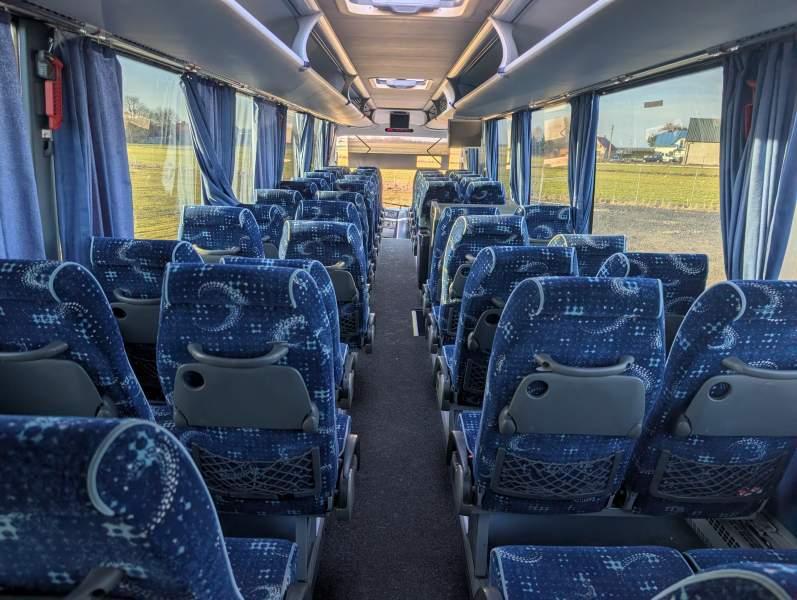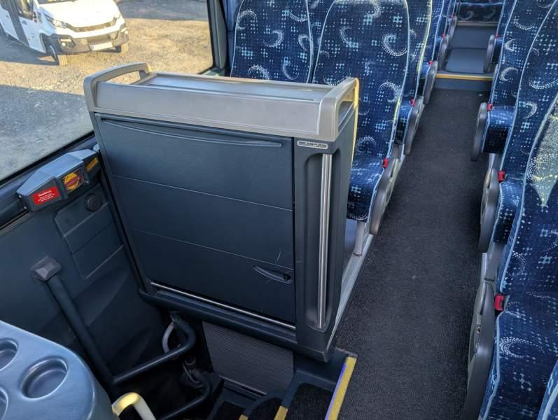 : video, WC, lodówka, caffebar, kabina sypialna, fotele odchylane, oświetlenie indywidualne, ABS, retarder, podnóżki, mikrofon, klimatyzacja, radio, regulacja wysokości nadwozia, podwójne szyby boczne, wspomaganie kierownicy, DVD, ogrzewanie stacjonarne