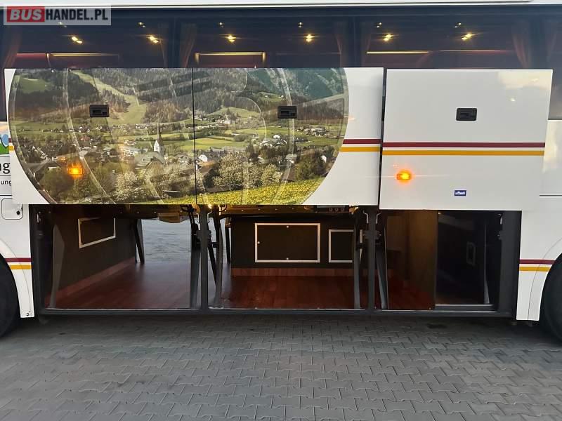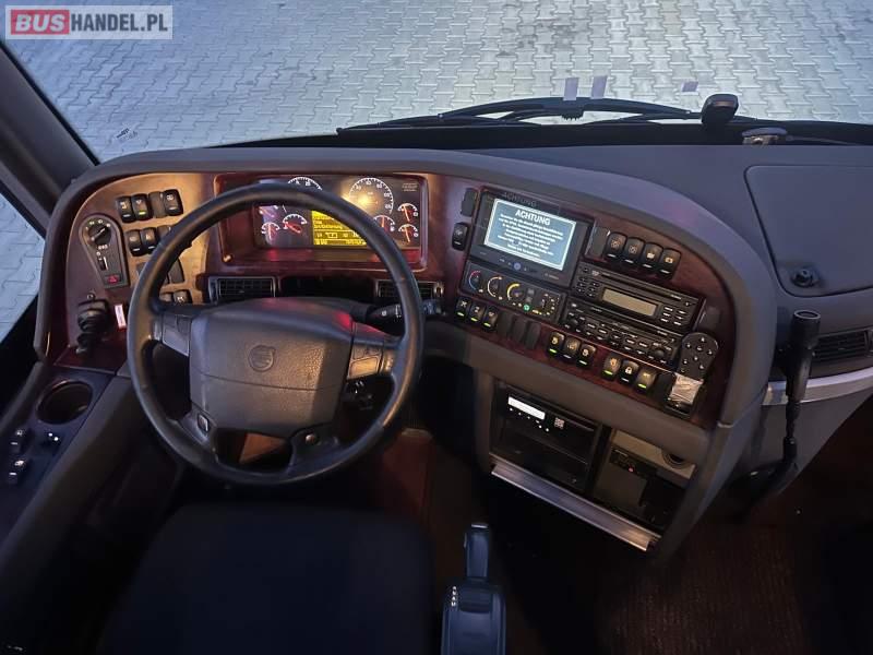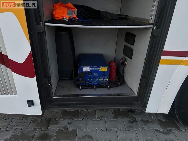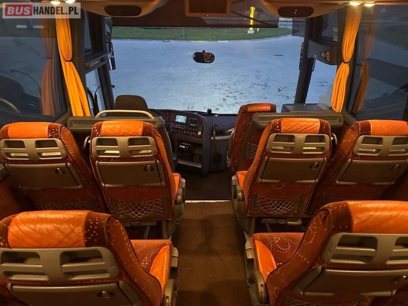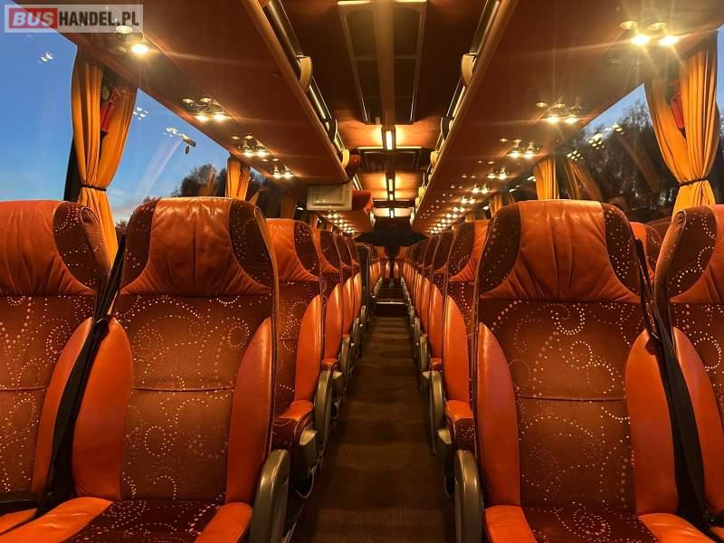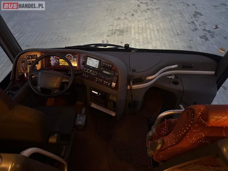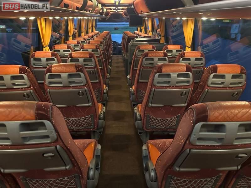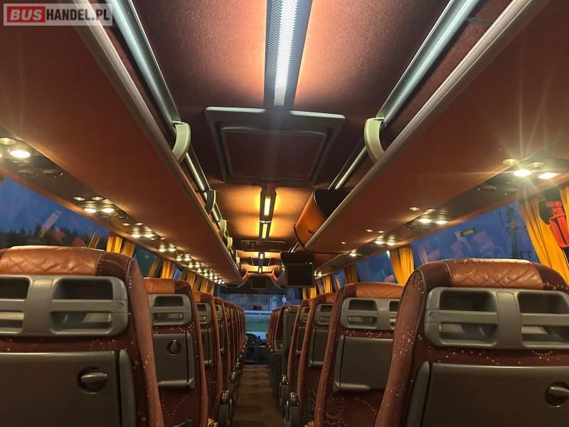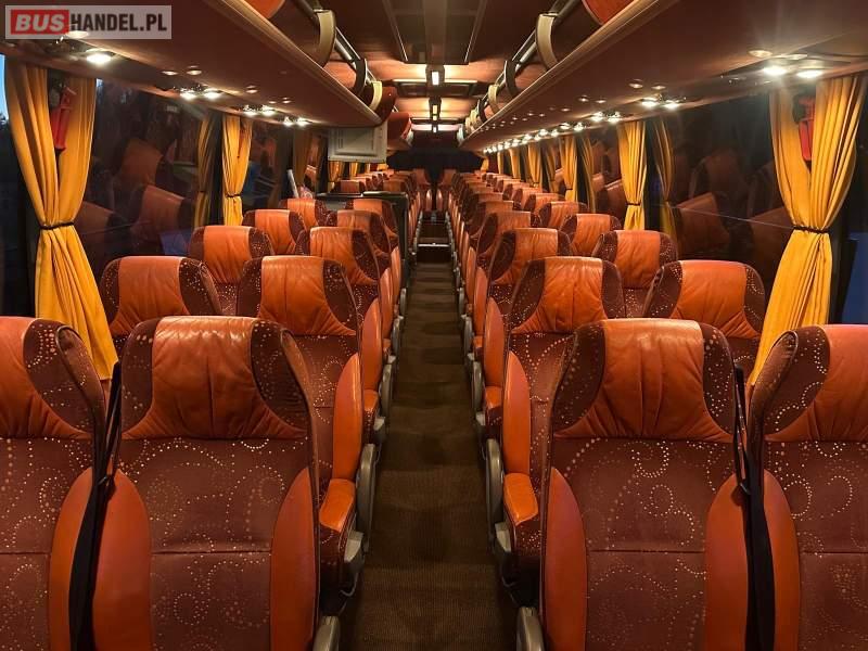: klimatyzacja, WC, lodówka, caffebar, kabina sypialna, oświetlenie indywidualne, nawiewy dyszowe, fotele odchylane, podnóżki, stoliczki, siateczki, ABS, ASR, tempomat, retarder, telefon, nawigacja, CD, mikrofon, radio, fotele odchylane i rozsuwane, wyświetlacz matrix, sejf, regulacja wysokości nadwozia, centralny zamek, podwójne szyby boczne, wspomaganie kierownicy, elektryczne lusterka, ogrzewanie stacjonarne, DVD, hak holowniczy, ESP