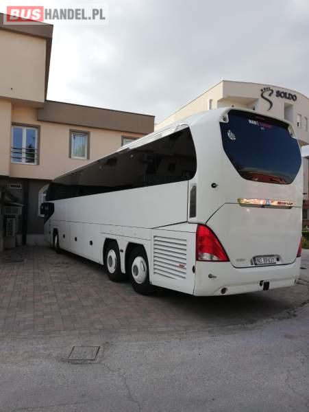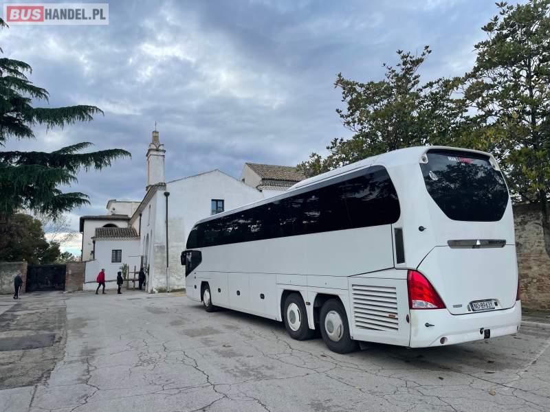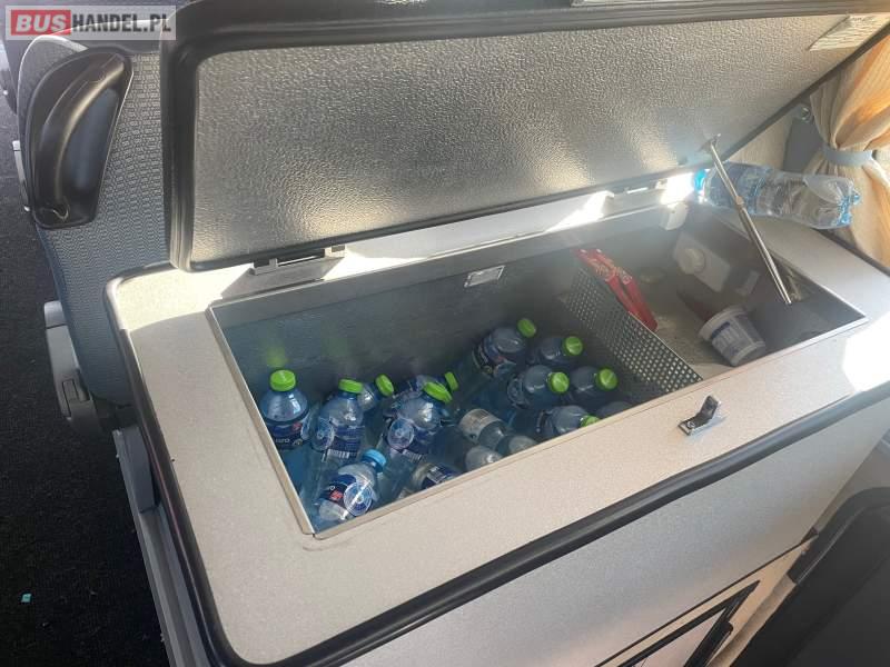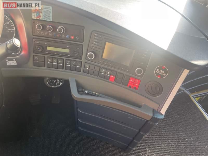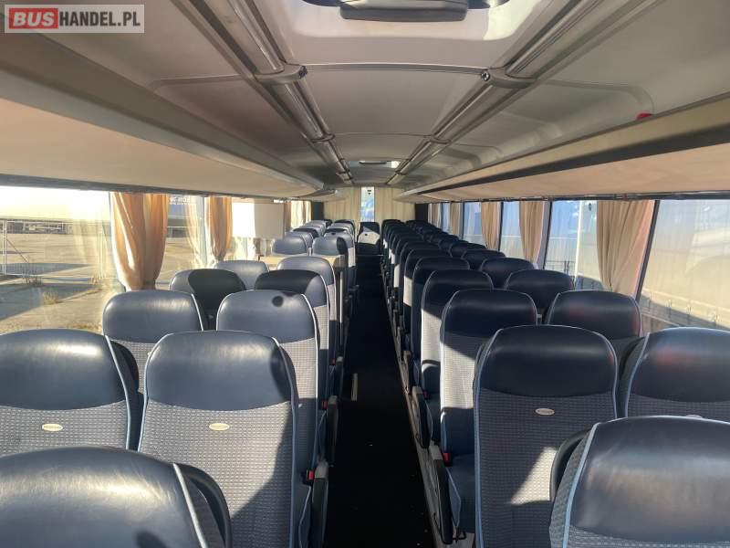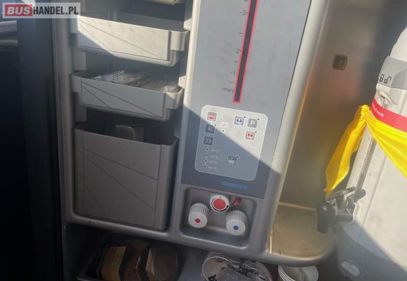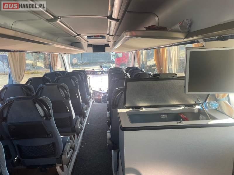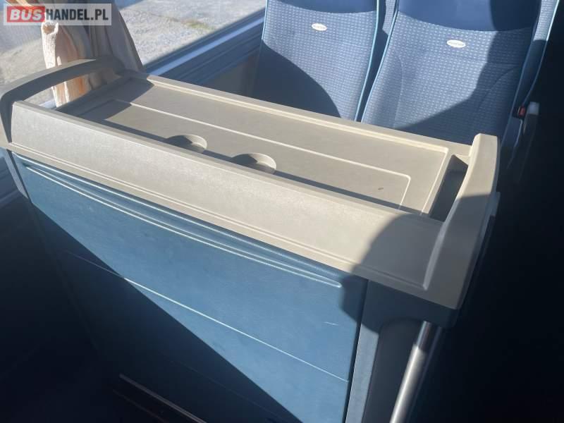 : klimatyzacja, video, WC, lodówka, caffebar, kabina sypialna, oświetlenie indywidualne, nawiewy dyszowe, fotele odchylane, podnóżki, stoliczki, siateczki, ABS, ASR, tempomat, retarder, nawigacja, CD, mikrofon, radio, fotele odchylane i rozsuwane, sejf, regulacja wysokości nadwozia, centralny zamek, podwójne szyby boczne, wspomaganie kierownicy, elektryczne lusterka, ogrzewanie stacjonarne, DVD, hak holowniczy, ESP