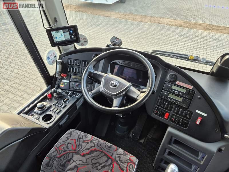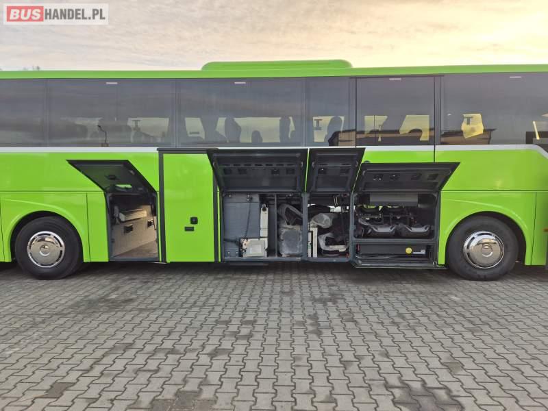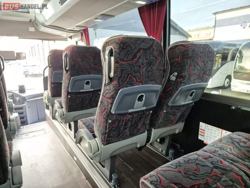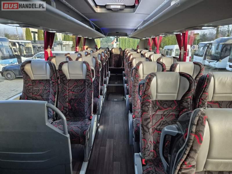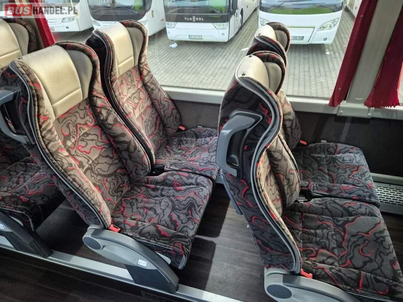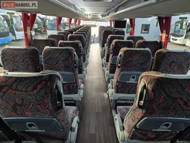 : video, WC, lodówka, kabina sypialna, fotele odchylane, oświetlenie indywidualne, siateczki, ABS, tempomat, retarder, telefon, nawigacja, CD, podnóżki, stoliczki, mikrofon, klimatyzacja, radio, rampa dla inwalidów, regulacja wysokości nadwozia, centralny zamek, podwójne szyby boczne, wspomaganie kierownicy, elektryczne lusterka, DVD, ogrzewanie stacjonarne