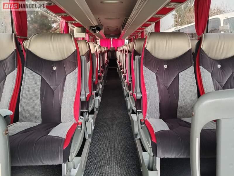 : video, WC, lodówka, kabina sypialna, fotele odchylane, oświetlenie indywidualne, nawiewy dyszowe, siateczki, ABS, ASR, tempomat, retarder, podnóżki, stoliczki, mikrofon, klimatyzacja, radio, sejf, regulacja wysokości nadwozia, centralny zamek, podwójne szyby boczne, wspomaganie kierownicy, elektryczne lusterka, fotele odchylane i rozsuwane, DVD, ESP