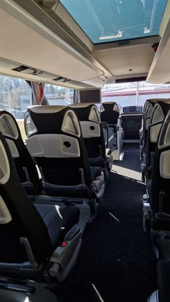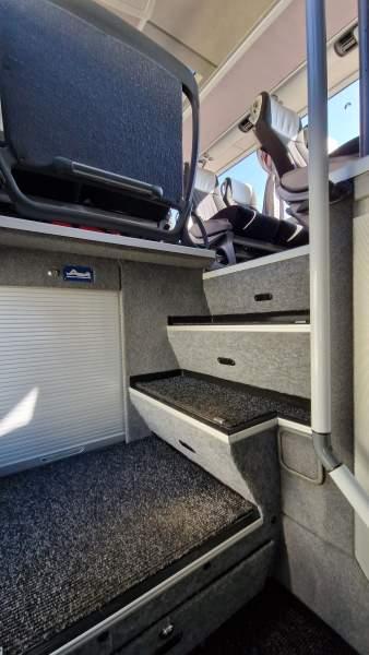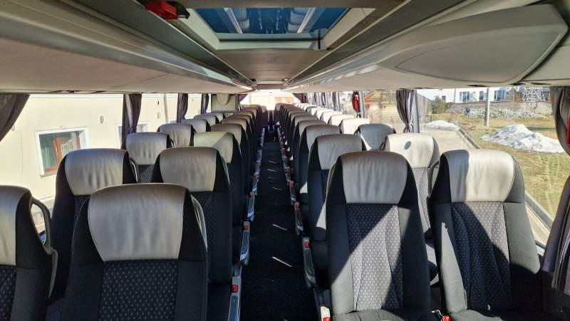 : video, WC, lodówka, caffebar, kabina sypialna, fotele odchylane, oświetlenie indywidualne, nawiewy dyszowe, siateczki, ABS, ASR, tempomat, retarder, CD, podnóżki, stoliczki, mikrofon, klimatyzacja, radio, kuchenka mikrofalowa, regulacja wysokości nadwozia, centralny zamek, podwójne szyby boczne, wspomaganie kierownicy, elektryczne lusterka, fotele odchylane i rozsuwane, DVD, ogrzewanie stacjonarne, hak holowniczy, ESP
