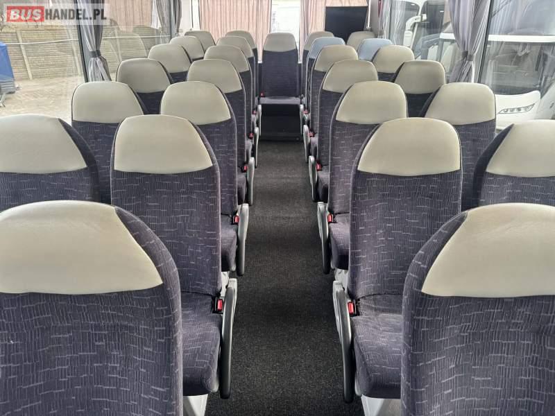 : video, WC, lodówka, oświetlenie indywidualne, nawiewy dyszowe, siateczki, ABS, ASR, tempomat, retarder, CD, podnóżki, mikrofon, klimatyzacja, radio, regulacja wysokości nadwozia, centralny zamek, podwójne szyby boczne, wspomaganie kierownicy, elektryczne lusterka, aluminiowe felgi, fotele odchylane i rozsuwane, DVD, ogrzewanie stacjonarne, ESP