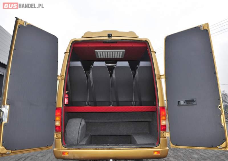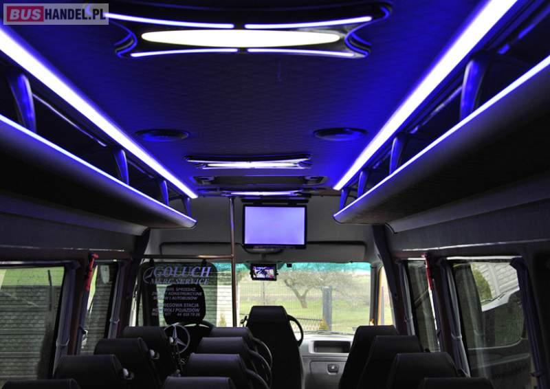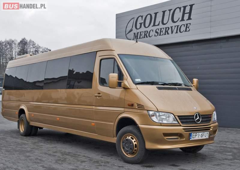 Aukcja jest ogłoszeniem poglądowym, dotyczy kupna gotowego, lub wykonania na zamówienie klienta autobusu dowolnej konfiguracji. Ceny gotowych aut są w granicach od 60000 do 130000 tyś. zł netto możliwość wystawienia Vat marża lub faktury Vat W celu uzyskania dokładnych informacji dotyczących gotowego pojazdu jak również wykonania pojazdu pod zamówienie klienta, prosimy o kontak telefoniczny z numerem: 602217677 1. Rok produkcji 2006 2. Ilość miejsc w autobusie 32 siedzących plus kierowca. 3. Silnik 2. 2 CDI- 160km- program wzmocniony, oszczędnościowy, specjalistyczne wtryskiwacze. 4. Pojazd po pełnym serwisie olejowym: silnik, skrzynia, most. 5. Pojazd posiada pełną książkę serwisową. 6. Skrzynia manualna, układ hamulcowy, układ jezdny, układ zawieszenia specjalnie wzmocniony do autobusów – stan idealny. 7. Pojazd zarejestrowany, z kartą pojazdu i ważnym przeglądem technicznym. 8. Nowa zabudowa autobusowa: - Siedzenia autobusowe homologowane z pasami bezpieczeństwa 3-punktowymi plus uchwyty. - Ściana działowa za kierowcą homologowana. - Wykładzina antypoślizgowa, jasna autobusowa. - Nowoczesne wykończenie wnętrza w skórze, skayu, materiale. - Oświetlenie wewnętrzne czteropunktowe. - Cała zabudowa autobusowa nowa - Pełne wyposażenie autobusowe. - Szyby przyciemniane panoramiczne z homologacją. - firanki, uchwyty. - Szyberdachy sztuk 2, uchylane w 4 strony. 9. Klimatyzacja dachowa autobusowa nowa oryginalna firmy Webasto plus oddzielna klimatyzacja kierowcy. 10. Oddzielny nowy układ ogrzewania: - Webasto mokre, - webasto suche, - dwie nagrzewnice wewnętrzne. 11. Hak holowniczy z homologacją. 12. Radio samochodowe blaupunkt z odtwarzaczem dvd i mikrofonem. 13. Ospojlerowanie całego pojazdu oraz zderzak przedni obniżany autobusowy. 14. Alarm, imobilaizer, centralny zamek. 15. Kolor autobusu – złoto metalic. 16. Nowe oświetlenie zewnętrzne – wszystkie lampy nowe homologowane. 17. Pojazd ocieplony i zakonserwowany. 18. Kamera cofania, kamera wnętrza, wyświetlacz zamiast luterka wstecznego. 19. Ostatni rząd foteli na „galerce”. 20. Specjalistycznie powiększany bagażnik w tylnej części pojazdu, pojemność ok 600l. 21. Nowe felgi 16 cali 22. Nowe opony 205/75 R 16C 23. Faktura Vat marża lub faktura vat Sprzedający:
