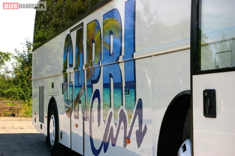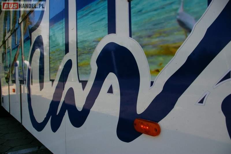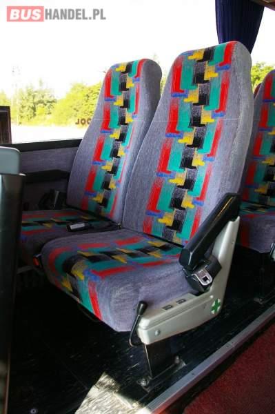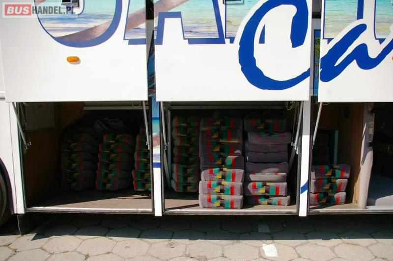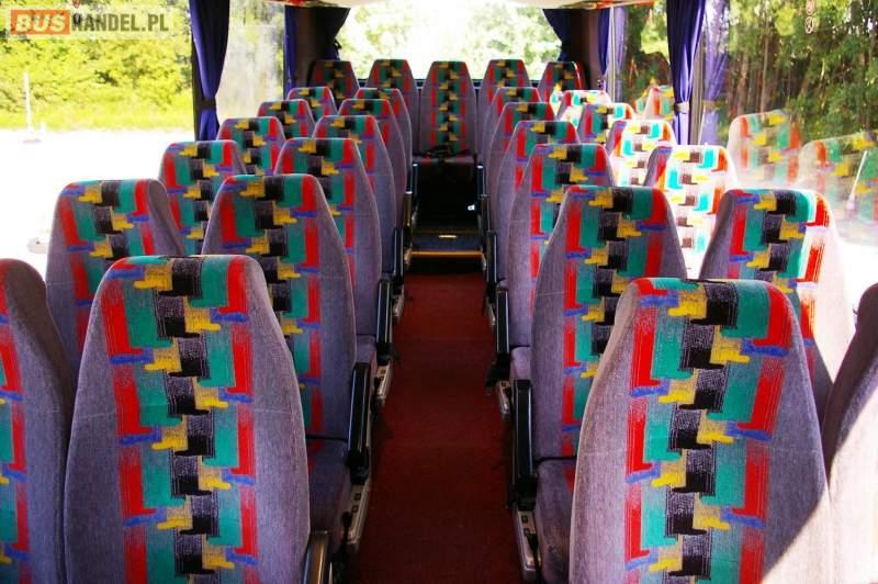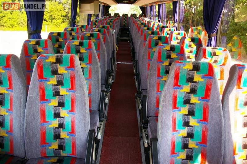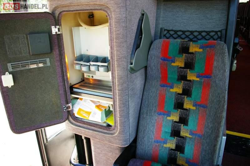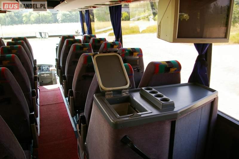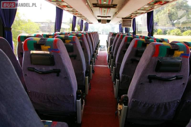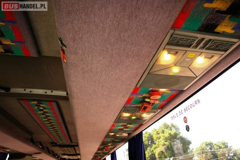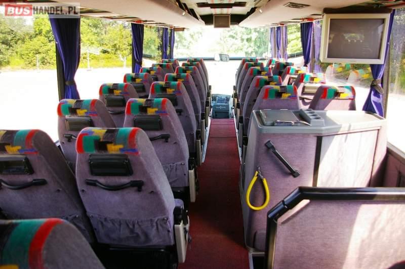 : video, WC, lodówka, caffebar, kabina sypialna, fotele odchylane, oświetlenie indywidualne, nawiewy dyszowe, siateczki, ABS, retarder, podnóżki, mikrofon, klimatyzacja, radio, regulacja wysokości nadwozia, centralny zamek, podwójne szyby boczne, wspomaganie kierownicy, elektryczne lusterka, DVD, ogrzewanie stacjonarne