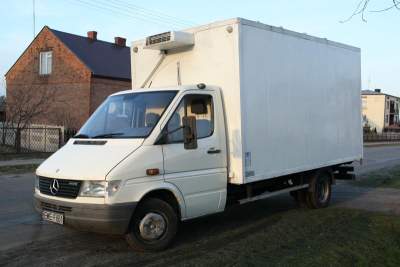 Mercedes Sprinter 412 - poj 2. 9 TDI, chłodnia - kontener (hakówka), agregat thermoking, wym:4. 10x2. 10x2. 15, koła bliźniacze, wspomaganie kierownicy, ABS, ładowność 2600 kg Sprzedający: