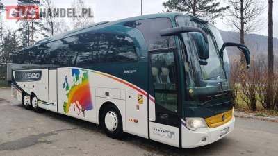 : klimatyzacja, video, WC, lodówka, caffebar, oświetlenie indywidualne, nawiewy dyszowe, podnóżki, stoliczki, siateczki, ABS, ASR, tempomat, retarder, CD, mikrofon, radio, fotele odchylane i rozsuwane, sejf, regulacja wysokości nadwozia, centralny zamek, podwójne szyby boczne, wspomaganie kierownicy, elektryczne lusterka, ogrzewanie stacjonarne, DVD, ESP