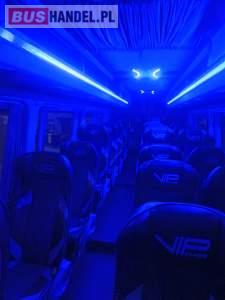 : WC, fotele odchylane, oświetlenie indywidualne, nawiewy dyszowe, siateczki, ABS, ASR, nawigacja, CD, stoliczki, mikrofon, klimatyzacja, radio, centralny zamek, podwójne szyby boczne, wspomaganie kierownicy, elektryczne lusterka, fotele odchylane i rozsuwane, DVD, ogrzewanie stacjonarne, hak holowniczy, ESP