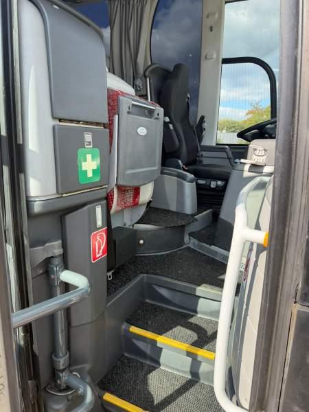 : WC, lodówka, caffebar, kabina sypialna, siateczki, ABS, ASR, tempomat, retarder, CD, podnóżki, stoliczki, mikrofon, klimatyzacja, radio, sejf, centralny zamek, podwójne szyby boczne, wspomaganie kierownicy, elektryczne lusterka, fotele odchylane i rozsuwane, DVD, hak holowniczy, ESP