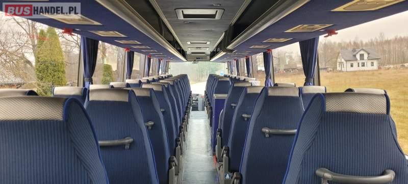 : video, WC, lodówka, fotele odchylane, oświetlenie indywidualne, nawiewy dyszowe, siateczki, ABS, ASR, tempomat, retarder, CD, podnóżki, stoliczki, mikrofon, klimatyzacja, radio, wyświetlacz matrix, regulacja wysokości nadwozia, podwójne szyby boczne, wspomaganie kierownicy, elektryczne lusterka, DVD, ogrzewanie stacjonarne, ESP