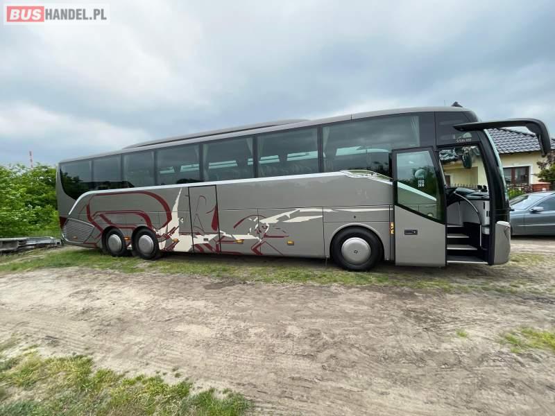 : video, WC, caffebar, fotele odchylane, oświetlenie indywidualne, nawiewy dyszowe, siateczki, ABS, ASR, tempomat, retarder, nawigacja, CD, podnóżki, stoliczki, mikrofon, klimatyzacja, radio, sejf, regulacja wysokości nadwozia, centralny zamek, podwójne szyby boczne, wspomaganie kierownicy, fotele odchylane i rozsuwane, DVD, ogrzewanie stacjonarne, hak holowniczy, ESP