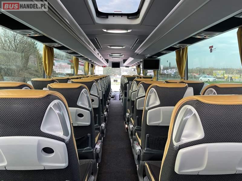 : video, WC, lodówka, caffebar, kabina sypialna, fotele odchylane, oświetlenie indywidualne, nawiewy dyszowe, siateczki, ABS, ASR, tempomat, retarder, telefon, nawigacja, CD, podnóżki, stoliczki, mikrofon, klimatyzacja, radio, wyświetlacz matrix, sejf, regulacja wysokości nadwozia, centralny zamek, podwójne szyby boczne, wspomaganie kierownicy, elektryczne lusterka, fotele odchylane i rozsuwane, DVD, ogrzewanie stacjonarne, hak holowniczy, ESP