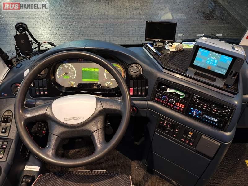: video, WC, lodówka, caffebar, kabina sypialna, fotele odchylane, oświetlenie indywidualne, nawiewy dyszowe, siateczki, ABS, ASR, tempomat, retarder, CD, stoliczki, mikrofon, klimatyzacja, radio, regulacja wysokości nadwozia, centralny zamek, podwójne szyby boczne, wspomaganie kierownicy, elektryczne lusterka, fotele odchylane i rozsuwane, DVD, ogrzewanie stacjonarne, ESP