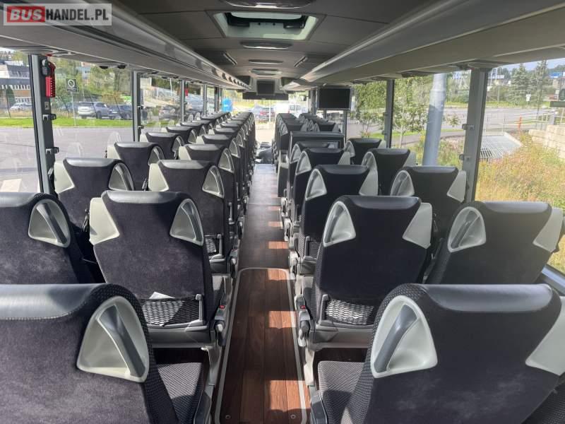 : video, WC, lodówka, oświetlenie indywidualne, nawiewy dyszowe, siateczki, ABS, ASR, tempomat, retarder, CD, podnóżki, klimatyzacja, radio, regulacja wysokości nadwozia, centralny zamek, podwójne szyby boczne, wspomaganie kierownicy, elektryczne lusterka, fotele odchylane i rozsuwane, DVD, ogrzewanie stacjonarne, ESP