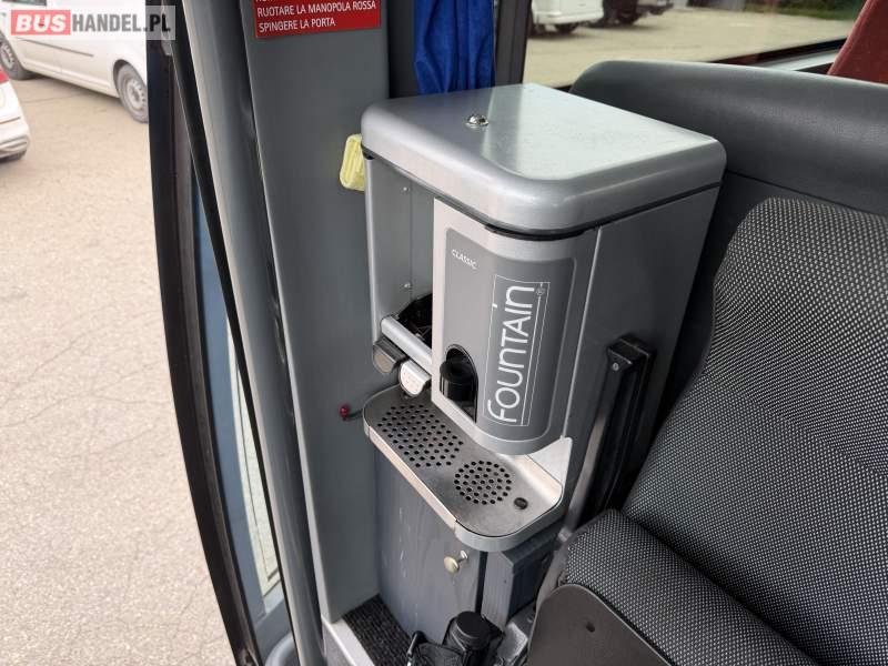 : lodówka, fotele odchylane, oświetlenie indywidualne, nawiewy dyszowe, siateczki, ABS, ASR, tempomat, retarder, podnóżki, stoliczki, mikrofon, klimatyzacja, radio, regulacja wysokości nadwozia, centralny zamek, podwójne szyby boczne, wspomaganie kierownicy, elektryczne lusterka, DVD, ogrzewanie stacjonarne