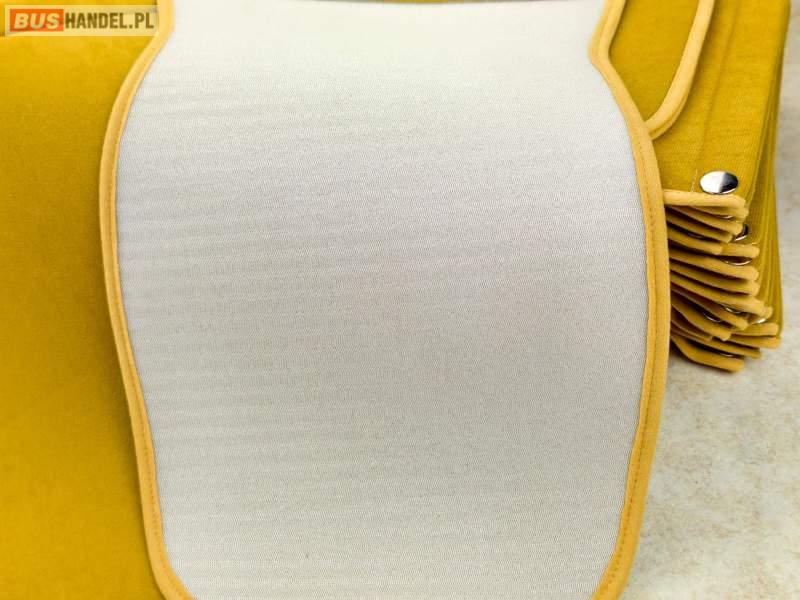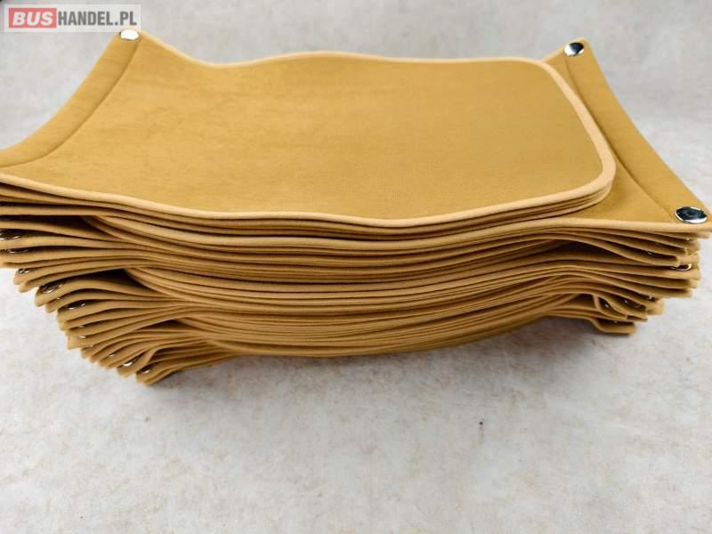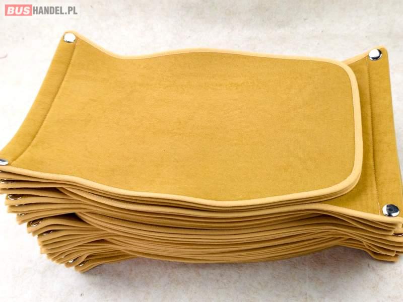 Zagłówki autobusowe, szyte na wymiar, kształt RYBKI, przedłużane i zwężane, mocowane na NAPY, dostosowane kształtem do wymiarów foteli autobusowych Sprzedający: