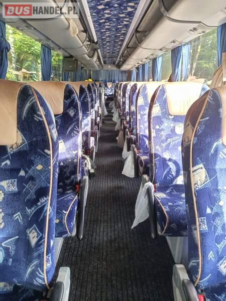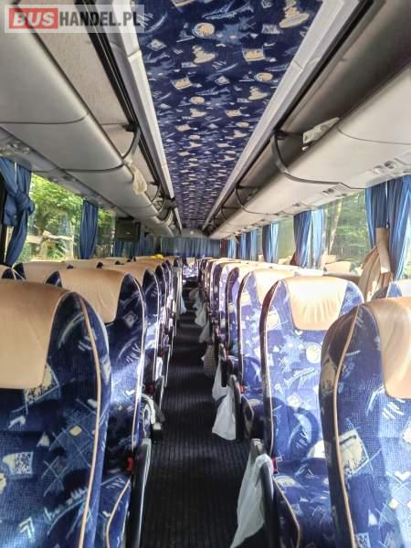 : video, WC, lodówka, caffebar, kabina sypialna, oświetlenie indywidualne, nawiewy dyszowe, siateczki, ABS, ASR, tempomat, retarder, telefon, CD, stoliczki, mikrofon, klimatyzacja, radio, sejf, regulacja wysokości nadwozia, podwójne szyby boczne, wspomaganie kierownicy, elektryczne lusterka, fotele odchylane i rozsuwane, DVD, ogrzewanie stacjonarne, ESP
