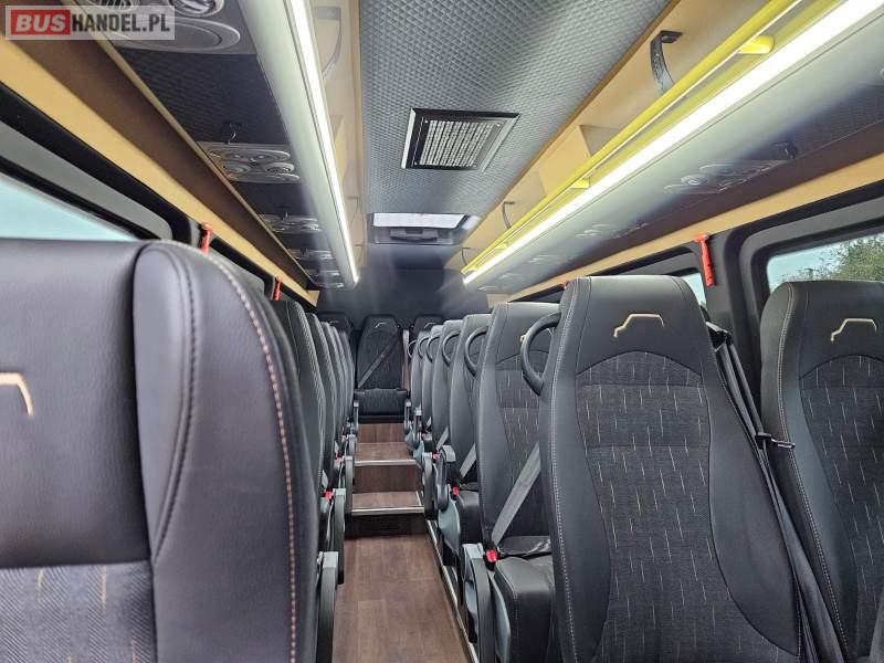 Fabrycznie nowy dostępny od ręki sprinter Turystyczny, 24 miejsca siedzące, możliwość rejestracji na 8 miejsc stojących, drzwi elektryczne, dwa wyświetlacze tras, klimatyzacja fabryczna Mercedes klimatronic plus dodatkowa firmy Webasto na osobnym kompresorze dla pasażerów z indywidualnymi nawiewami w półkach, ogrzewanie postojowe suche, ogrzewanie konwektorowe, kamera cofania, pogłębiany bagażnik, kamera cofania, system GSR 2, możliwość załatwienia kredytu lub leasingu, więcej info 664 712 291 Sprzedający: