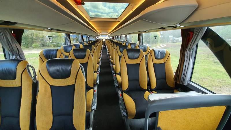 : video, WC, lodówka, caffebar, kabina sypialna, oświetlenie indywidualne, nawiewy dyszowe, siateczki, ABS, ASR, tempomat, retarder, telefon, CD, podnóżki, stoliczki, mikrofon, klimatyzacja, radio, kuchenka mikrofalowa, wyświetlacz matrix, sejf, regulacja wysokości nadwozia, centralny zamek, podwójne szyby boczne, wspomaganie kierownicy, elektryczne lusterka, fotele odchylane i rozsuwane, DVD, ogrzewanie stacjonarne, hak holowniczy, ESP