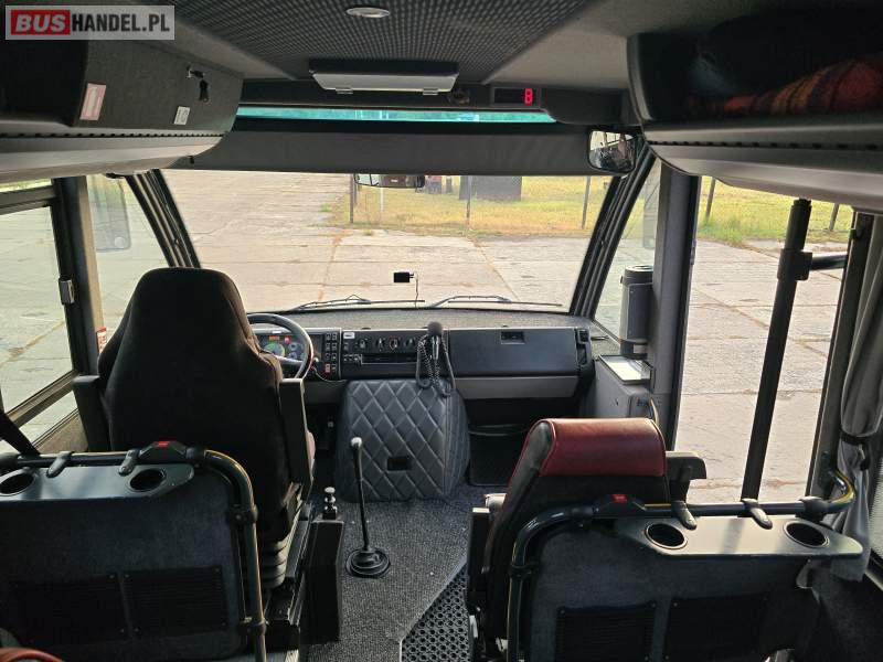 : video, WC, lodówka, caffebar, fotele odchylane, oświetlenie indywidualne, nawiewy dyszowe, siateczki, ABS, ASR, tempomat, retarder, CD, podnóżki, stoliczki, mikrofon, klimatyzacja, radio, regulacja wysokości nadwozia, centralny zamek, podwójne szyby boczne, wspomaganie kierownicy, fotele odchylane i rozsuwane, DVD, ogrzewanie stacjonarne, hak holowniczy, ESP