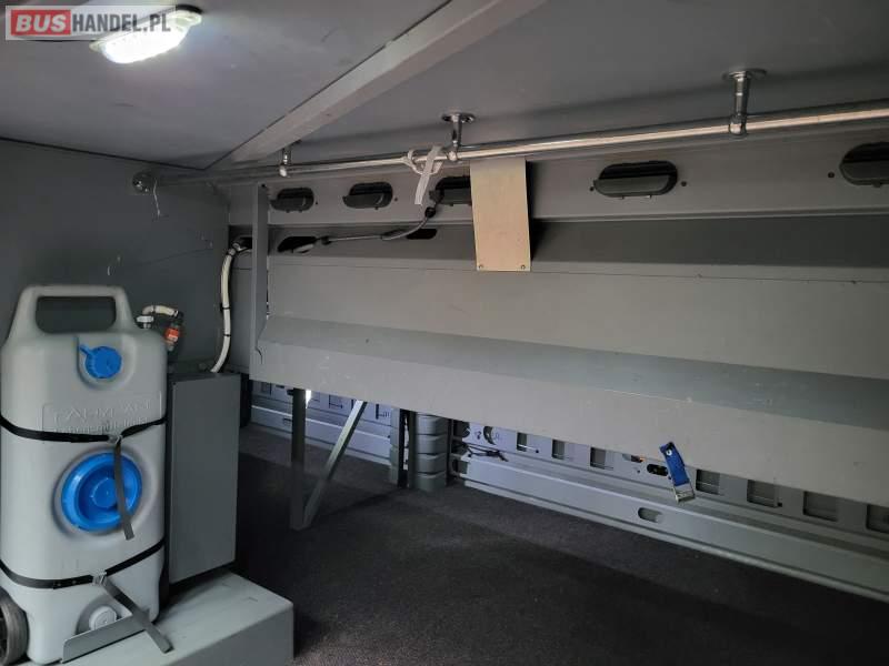 : video, WC, lodówka, caffebar, kabina sypialna, oświetlenie indywidualne, nawiewy dyszowe, siateczki, ABS, ASR, tempomat, retarder, telefon, nawigacja, CD, podnóżki, stoliczki, mikrofon, klimatyzacja, radio, sejf, regulacja wysokości nadwozia, centralny zamek, podwójne szyby boczne, wspomaganie kierownicy, elektryczne lusterka, fotele odchylane i rozsuwane, DVD, ogrzewanie stacjonarne, hak holowniczy, ESP