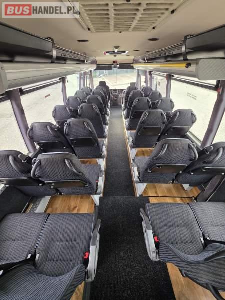 : nawiewy dyszowe, siateczki, ABS, ASR, tempomat, retarder, podnóżki, stoliczki, mikrofon, klimatyzacja, radio, centralny zamek, wspomaganie kierownicy, elektryczne lusterka, fotele odchylane i rozsuwane, ogrzewanie stacjonarne