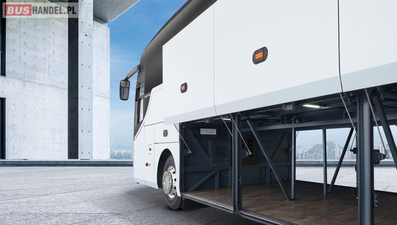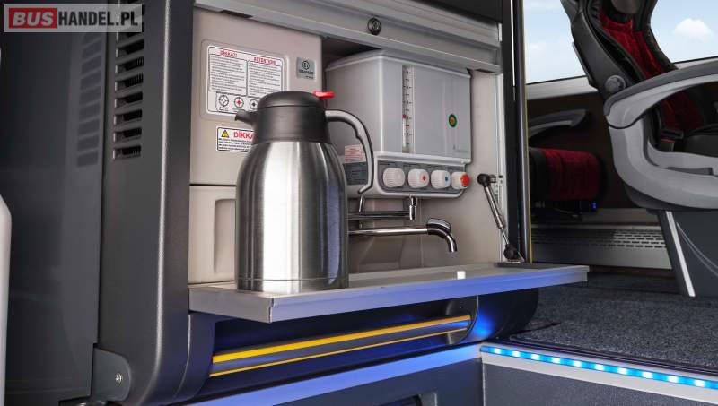 : klimatyzacja, video, WC, lodówka, caffebar, kabina sypialna, oświetlenie indywidualne, nawiewy dyszowe, podnóżki, stoliczki, siateczki, ABS, ASR, tempomat, retarder, telefon, CD, mikrofon, radio, fotele odchylane i rozsuwane, regulacja wysokości nadwozia, centralny zamek, podwójne szyby boczne, wspomaganie kierownicy, elektryczne lusterka, ogrzewanie stacjonarne, DVD, ESP