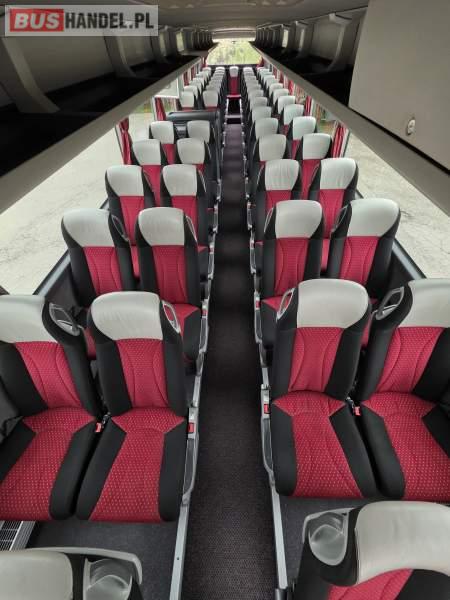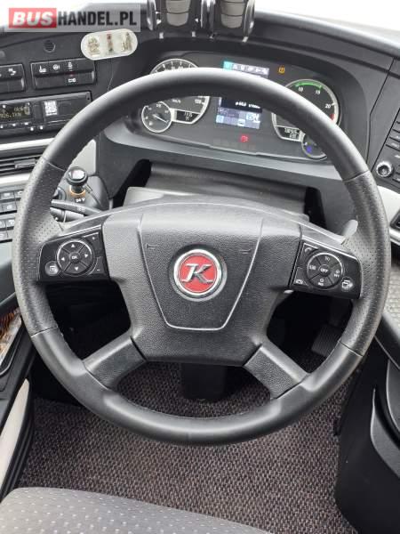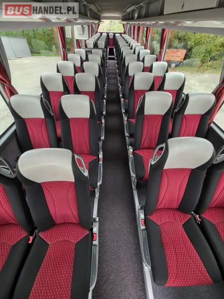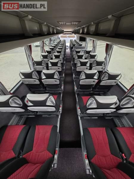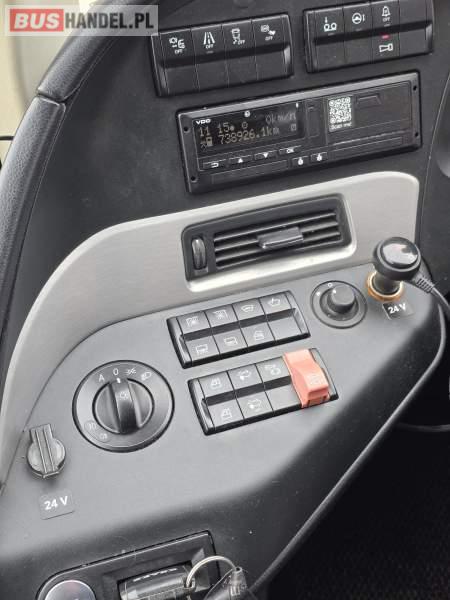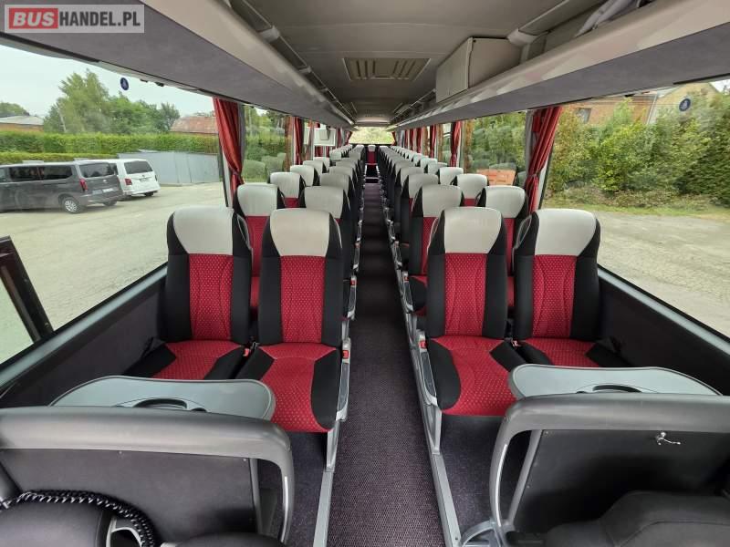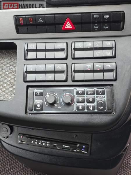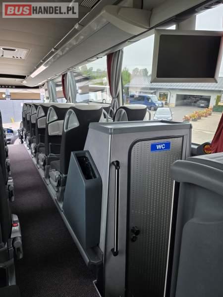 : WC, lodówka, caffebar, kabina sypialna, oświetlenie indywidualne, nawiewy dyszowe, siateczki, ABS, ASR, tempomat, retarder, podnóżki, stoliczki, mikrofon, klimatyzacja, radio, sejf, regulacja wysokości nadwozia, centralny zamek, podwójne szyby boczne, wspomaganie kierownicy, elektryczne lusterka, fotele odchylane i rozsuwane, DVD, ogrzewanie stacjonarne, ESP