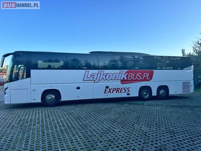 : WC, lodówka, caffebar, fotele odchylane, oświetlenie indywidualne, nawiewy dyszowe, siateczki, ABS, ASR, tempomat, retarder, podnóżki, stoliczki, mikrofon, klimatyzacja, radio, sejf, regulacja wysokości nadwozia, centralny zamek, podwójne szyby boczne, wspomaganie kierownicy, elektryczne lusterka, DVD, ogrzewanie stacjonarne