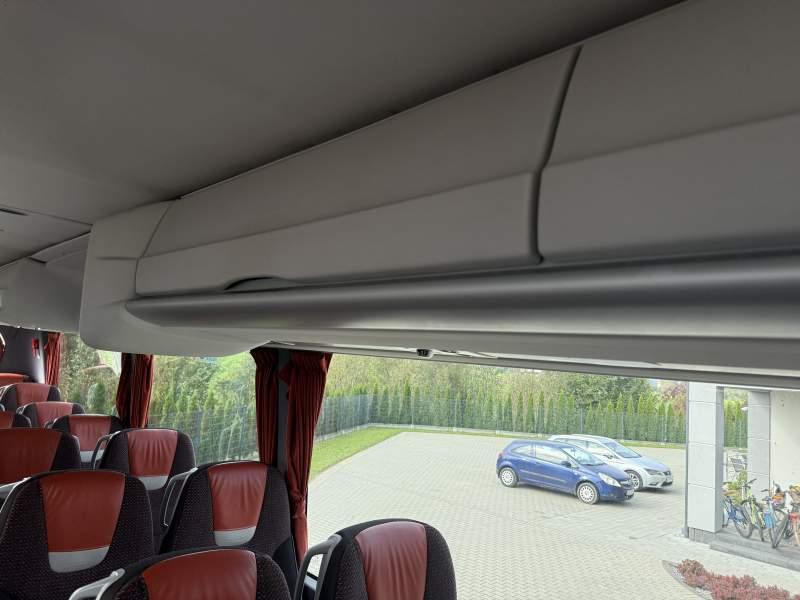 : WC, lodówka, kabina sypialna, oświetlenie indywidualne, nawiewy dyszowe, siateczki, tempomat, retarder, stoliczki, mikrofon, klimatyzacja, radio, rampa dla inwalidów, regulacja wysokości nadwozia, podwójne szyby boczne, wspomaganie kierownicy, elektryczne lusterka, ogrzewanie stacjonarne