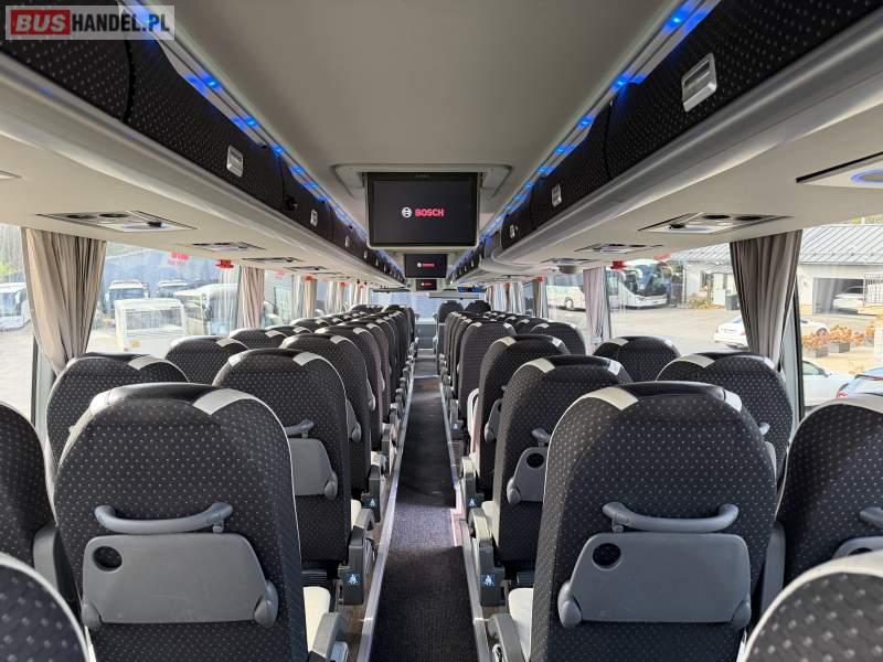 : WC, lodówka, caffebar, kabina sypialna, oświetlenie indywidualne, nawiewy dyszowe, siateczki, ABS, ASR, tempomat, retarder, telefon, podnóżki, stoliczki, mikrofon, klimatyzacja, radio, sejf, regulacja wysokości nadwozia, centralny zamek, podwójne szyby boczne, wspomaganie kierownicy, elektryczne lusterka, aluminiowe felgi, fotele odchylane i rozsuwane, DVD, ogrzewanie stacjonarne, hak holowniczy, ESP
