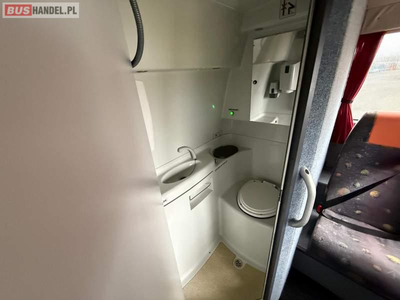 : WC, oświetlenie indywidualne, nawiewy dyszowe, ABS, ASR, tempomat, retarder, CD, podnóżki, mikrofon, klimatyzacja, radio, wyświetlacz matrix, rampa dla inwalidów, regulacja wysokości nadwozia, centralny zamek, podwójne szyby boczne, wspomaganie kierownicy, elektryczne lusterka, fotele odchylane i rozsuwane, ogrzewanie stacjonarne