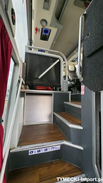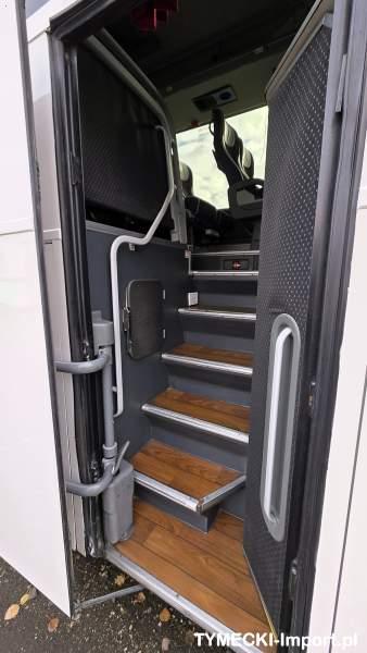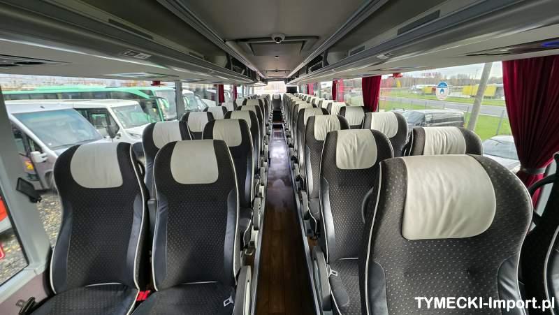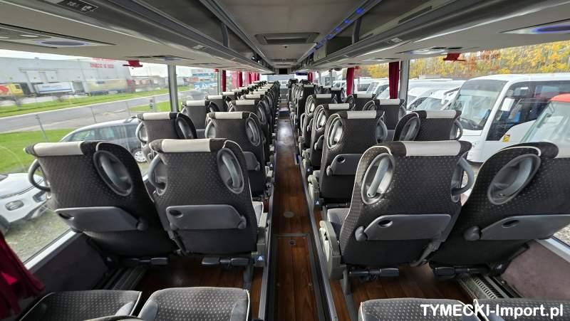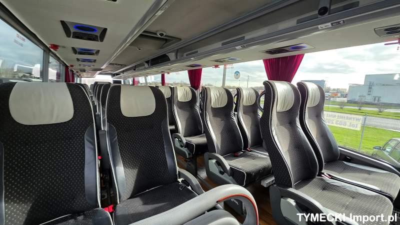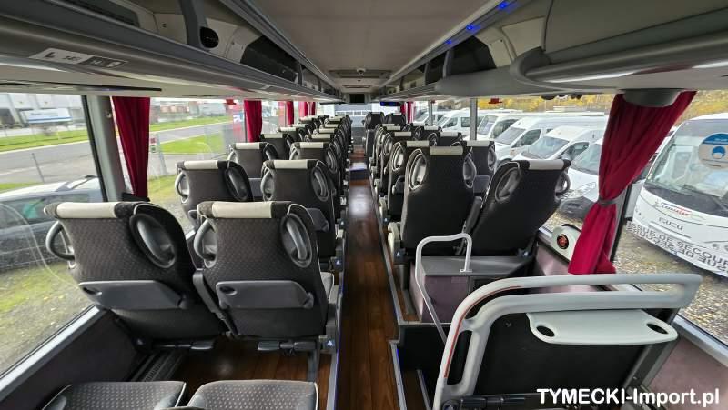 : video, WC, lodówka, kabina sypialna, fotele odchylane, oświetlenie indywidualne, nawiewy dyszowe, ABS, ASR, tempomat, retarder, nawigacja, CD, podnóżki, mikrofon, klimatyzacja, radio, regulacja wysokości nadwozia, centralny zamek, podwójne szyby boczne, wspomaganie kierownicy, elektryczne lusterka, ogrzewanie stacjonarne, ESP