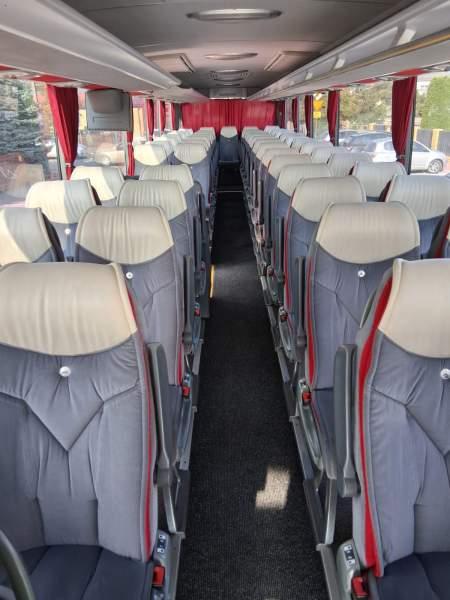 : video, WC, lodówka, kabina sypialna, fotele odchylane, oświetlenie indywidualne, nawiewy dyszowe, ABS, ASR, tempomat, retarder, CD, podnóżki, stoliczki, mikrofon, klimatyzacja, radio, regulacja wysokości nadwozia, centralny zamek, podwójne szyby boczne, wspomaganie kierownicy, elektryczne lusterka, fotele odchylane i rozsuwane, DVD, ogrzewanie stacjonarne, ESP